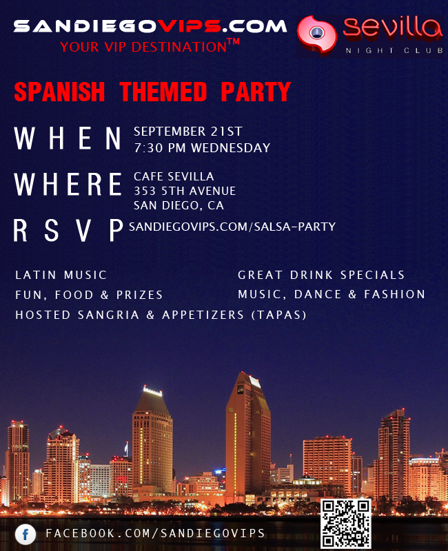 [notice]RSVP San Diego VIPs Spanish themed Party and please send Email : vips@sandiegovips.com with Full Name. All your guests must send email individually. Instructions will be sent via email [/notice]