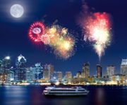 Description: Come aboard for our most popular three-hour Dinner Cruise, combining a mouth-watering three-course dinner, DJ entertainment, views of San Diego and a fireworks show above San Diego Bay to top it all off. Free Wi-fi. Post your pics while you cruise.